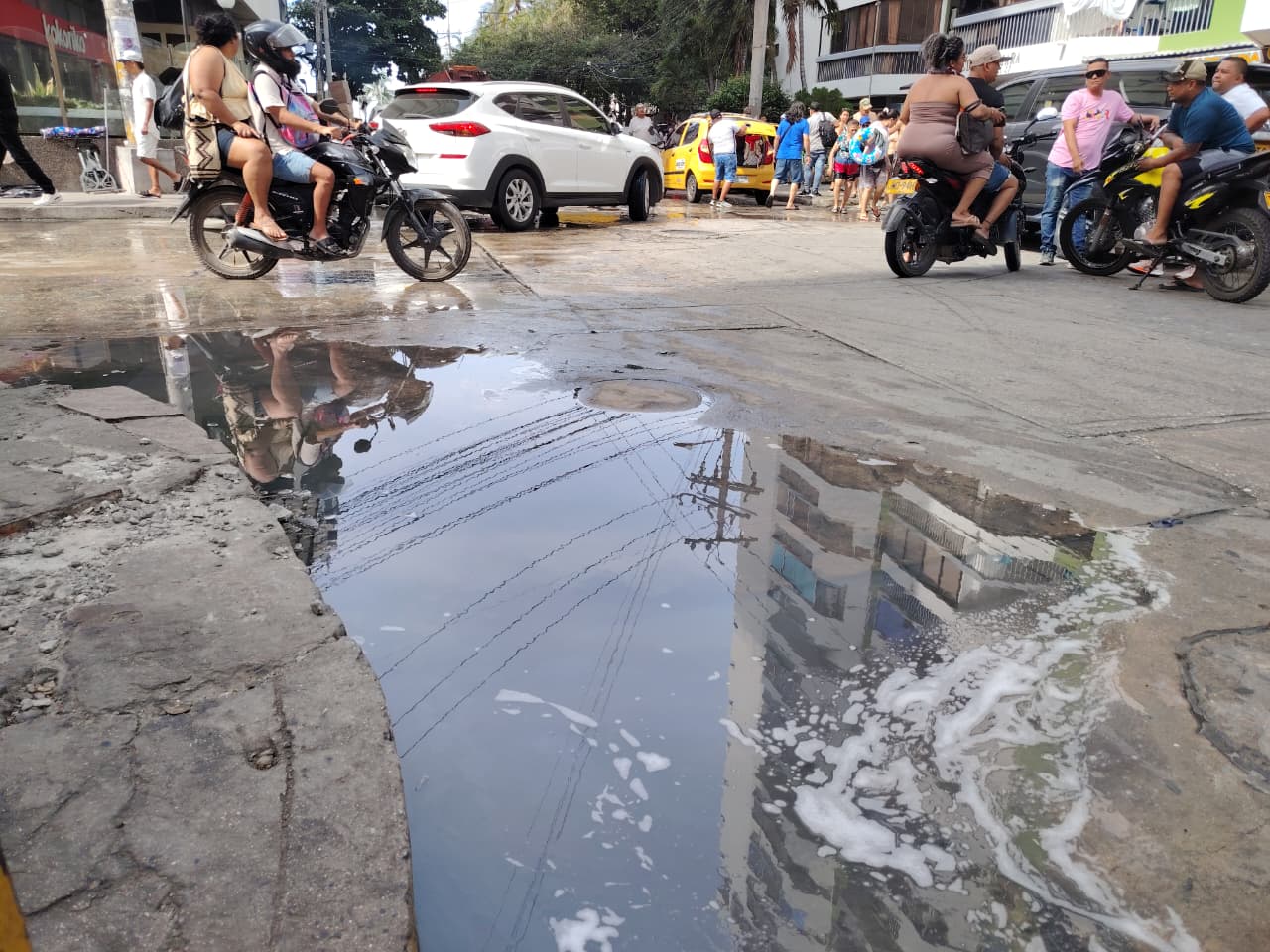Una tercera afectación se registra en la carrera 1 con calle 7, sector de alta circulación peatonal y comercial. Allí, la presencia constante de agua dificulta el paso, genera malos olores y provoca incomodidad entre quienes transitan por la zona.
