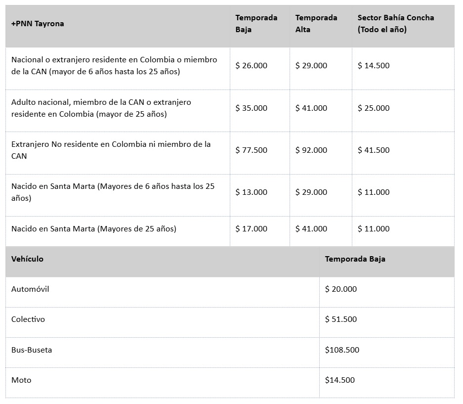 Accesos al Parque Tayrona