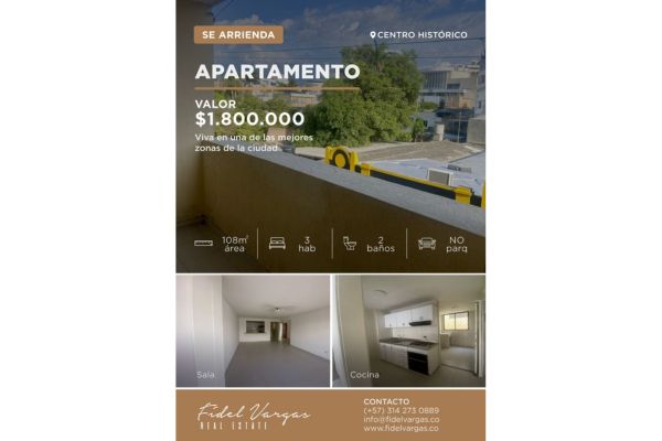 Amplio apartamento en arriendo en pleno Centro Histórico de Santa Marta