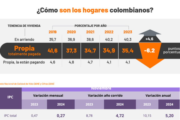 De acuerdo con la última Encuesta de Calidad de Vida del Dane, de los 18 millones de hogares en Colombia, más de 7 millones (el 40.3%) viven en arriendo, esta cifra ha aumentado significativamente en los últimos cinco años, en parte debido a los efectos de la pandemia y los cambios económicos asociados, así como a un cambio demográfico en las preferencias de los hogares; en particular, las grandes ciudades han experimentado un crecimiento en la demanda de viviendas de alquiler, impulsado también por opciones más flexibles como las rentas cortas y la preferencia por ubicaciones más cercanas a los centros urbanos, especialmente para hogares unipersonales.