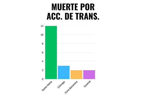 La mayor cifra de accidentalidad la puso Santa Marta con 12 casos, uno menos que la registrada en diciembre, mientras que el municipio de Ciénaga se ubicó en el segundo lugar con tres hechos, seguido de Zona Bananera y Guala con dos cada uno. Con una muerte aparecen Fundación, El Banco, Ariguaní y Puebloviejo.