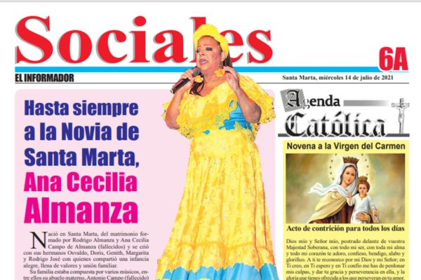 La ciudad de Santa Marta perdió a una de las principales exponentes de la cultura samaria producto de la pandemia Covid 19. Se trata de Ana Cecilia Almanza, cuyo fallecimiento se produjo por afectaciones derivadas del Covid 19.