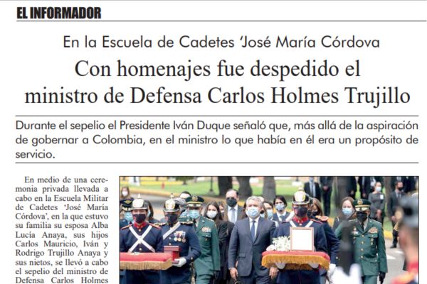 Después de haber asistido a un Consejo de Seguridad extraordinario en la base militar de la Primera División del Ejército en esta capital, el ministro de Defensa Carlos Holmes Trujillo comenzó a sentir los primeros síntomas del Covid-19.