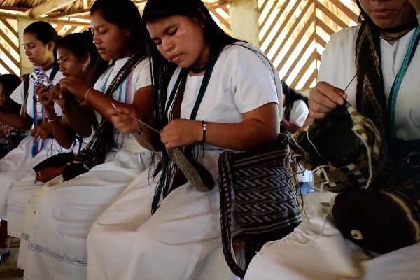 A 300 metros sobre el nivel del mar, en la zona occidental de la Sierra Nevada de Santa Marta, las mujeres tejedoras conservan la tradición histórica de los indígenas arhuacos, plasmando sus conocimientos a través del arte con la producción de mochilas en diferentes materiales.