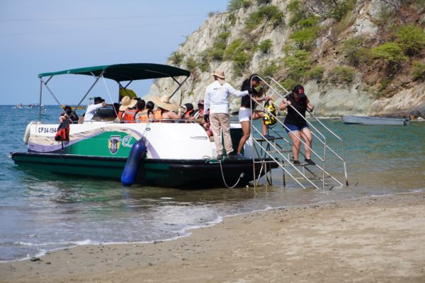 El acceso a la playa puede realizarse a través de dos opciones principales. La primera es a pie, mediante una caminata que parte desde El Rodadero y atraviesa un cerro que ofrece vistas panorámicas impresionantes del mar Caribe, en medio de una vegetación seca. La segunda opción es mediante el servicio de lanchas que parten desde El Rodadero, lo que facilita el acceso a aquellos que prefieren una travesía rápida y directa, con un costo de $32.000 ida y vuelta.
