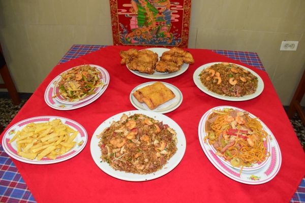 Los platos tradicionales de este restaurante son el arroz a la valenciana que lleva como ingredientes, camarón, jamón, verduras, salsas y un cuarto de pollo que lo acompaña; también está el lomey que es una mezcla de pollo, cerdo y camarón con pastas y la joya de la corona, el popular arroz chino que lleva, pollo, cerdo, jamón, camarón y raíces chinas.