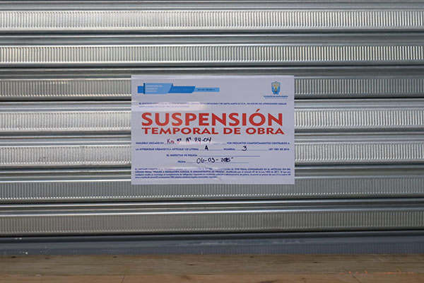 La Secretaría de Gobierno del Distrito de Santa Marta enbuenahora decidió paralizar la obra de construcción en el antejardín de una clínica, ubicada en la intersección de la calle 24 con carrera 3A, del barrio El Prado, zona céntrica de la ciudad.