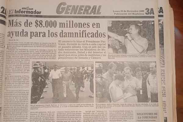 El entonces alcalde Jaime Solano Jimeno y la gestora social Patricia Vives Lacouture encabezaron las labores de rescate y ayuda humanitaria, con el apoyo del presidente Andrés Pastrana Arango, quien viajó a la ciudad para anunciar ayudas millonarias destinadas a la reconstrucción.