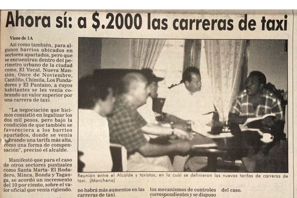En marzo del año 2000, la Alcaldía de Santa Marta oficializó la legalización de una tarifa mínima de $2.000 para el servicio de taxi. Hoy, un cuarto de siglo después, esa cifra se ha cuadruplicado.